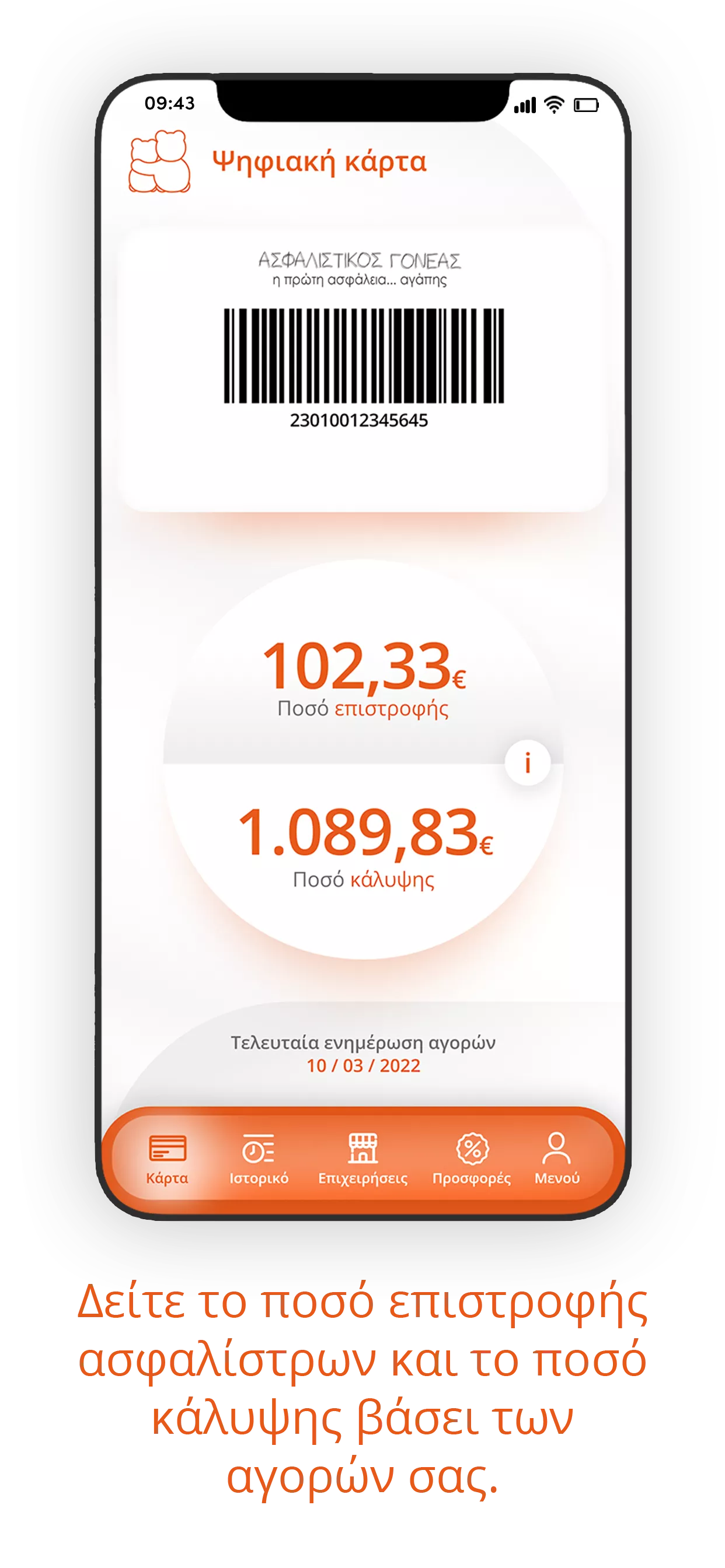 Δίνετε την κάρτα Ασφαλιστικός Γονέας για ενημέρωση των Ευρώ που συγκεντρώσατε.
